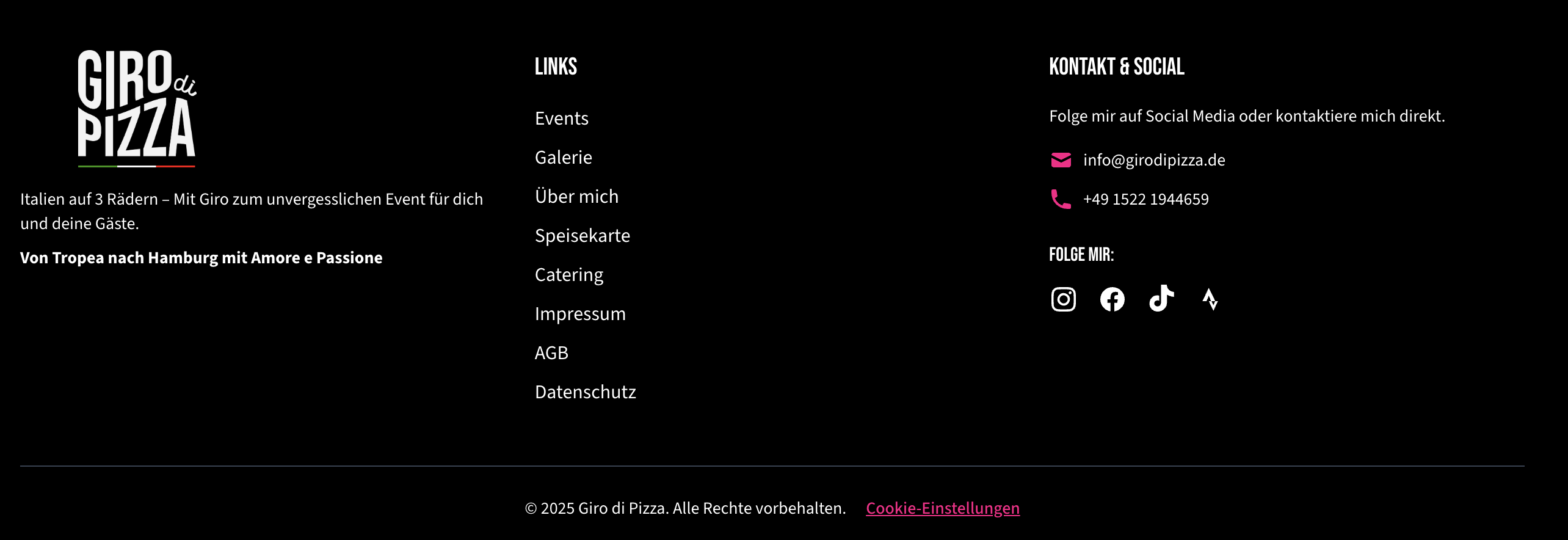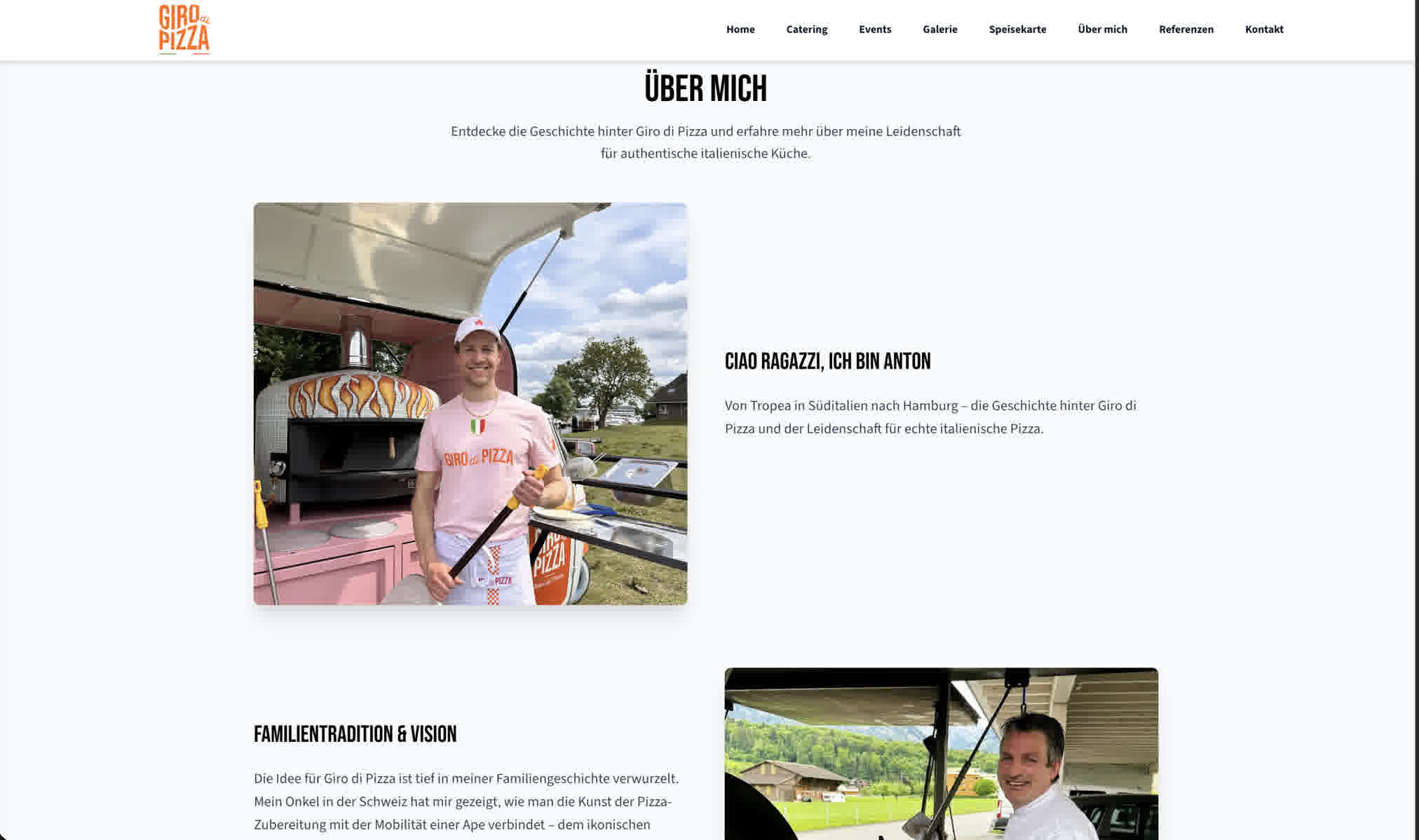 Online Präsenz für Giro di Pizza. SEO-optimiert, mit integriertem Event-Kalendar und einem modernen One-Page Design.